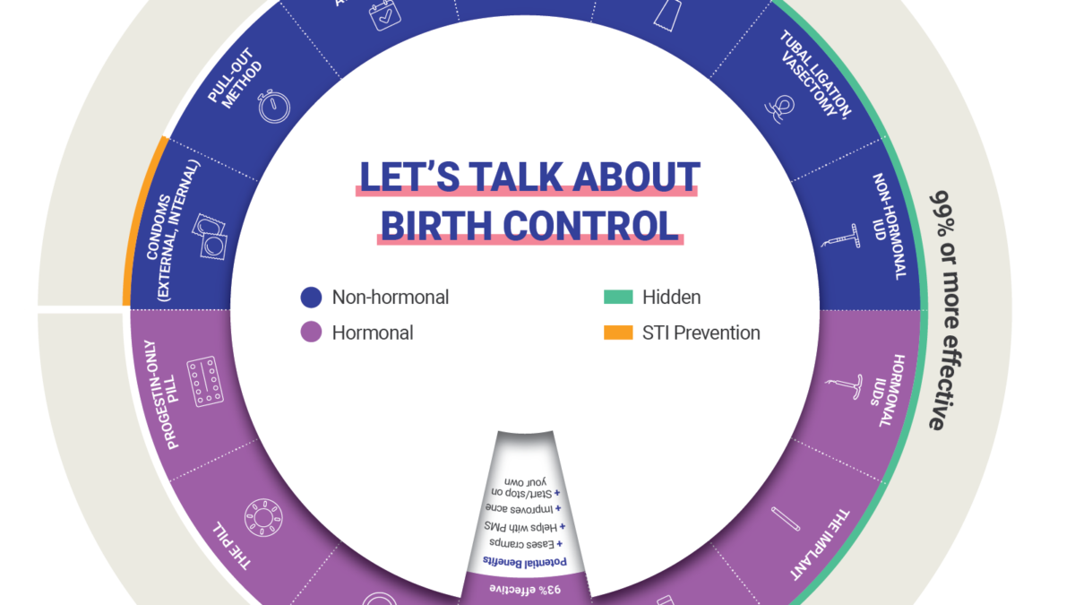 The wheel allows you to point to key information related to birth control use including: